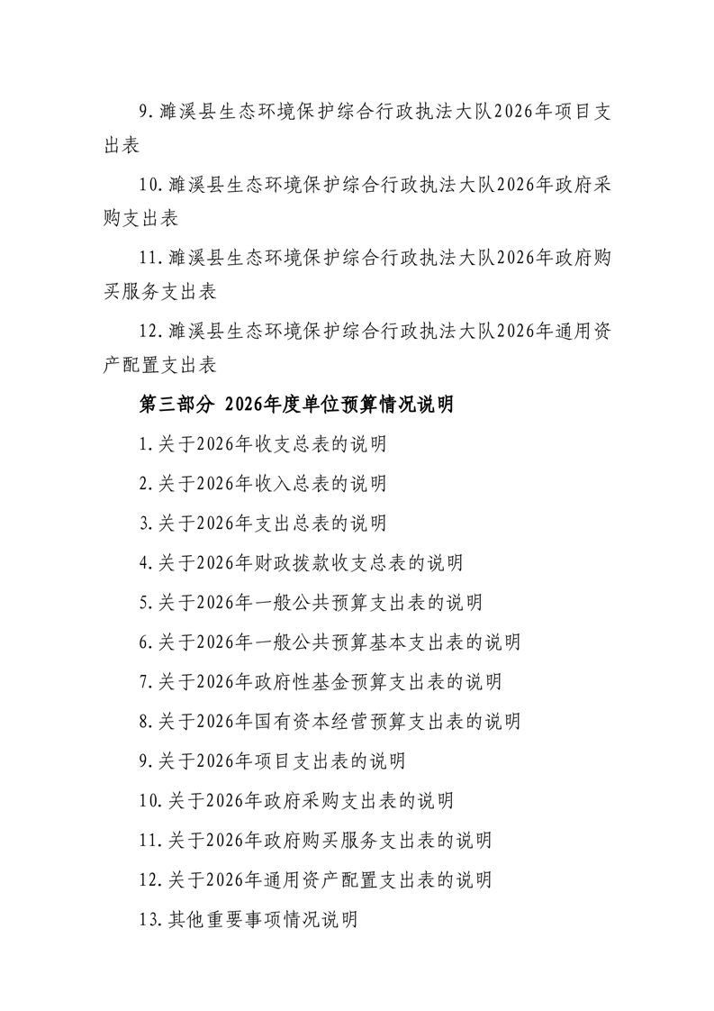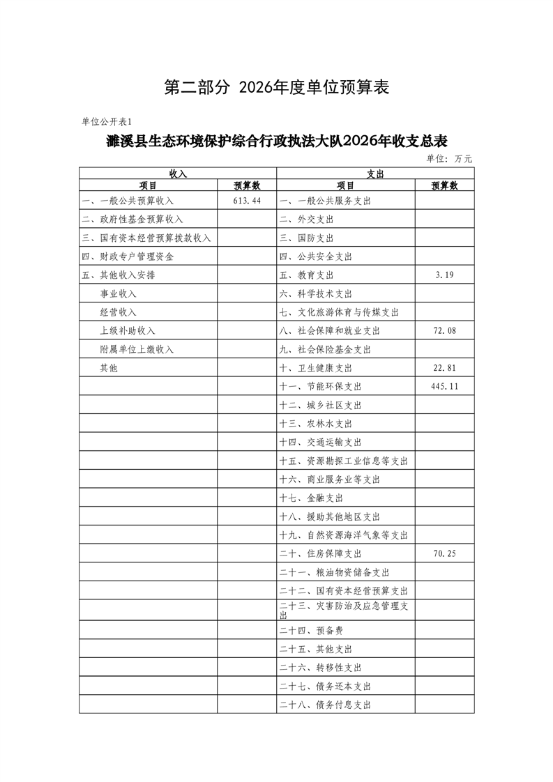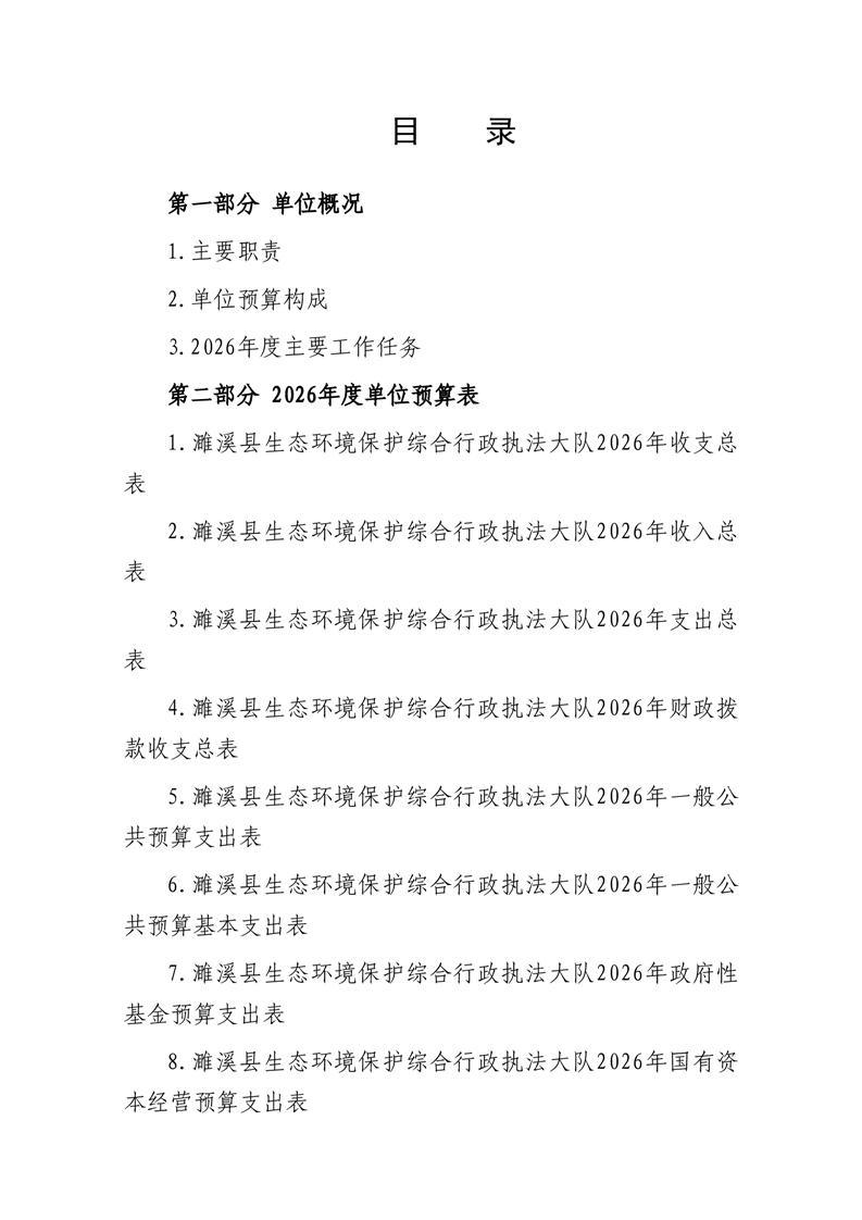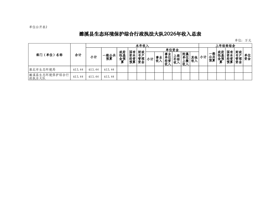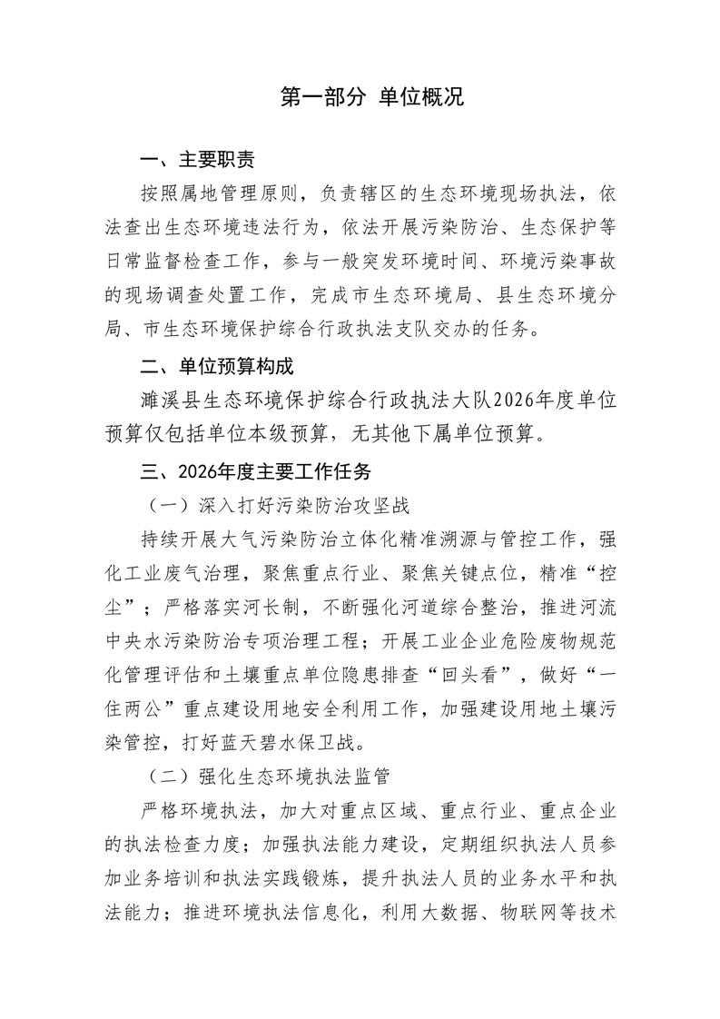 濉溪县生态环境保护综合行政执法大队2026年度单位预算公开