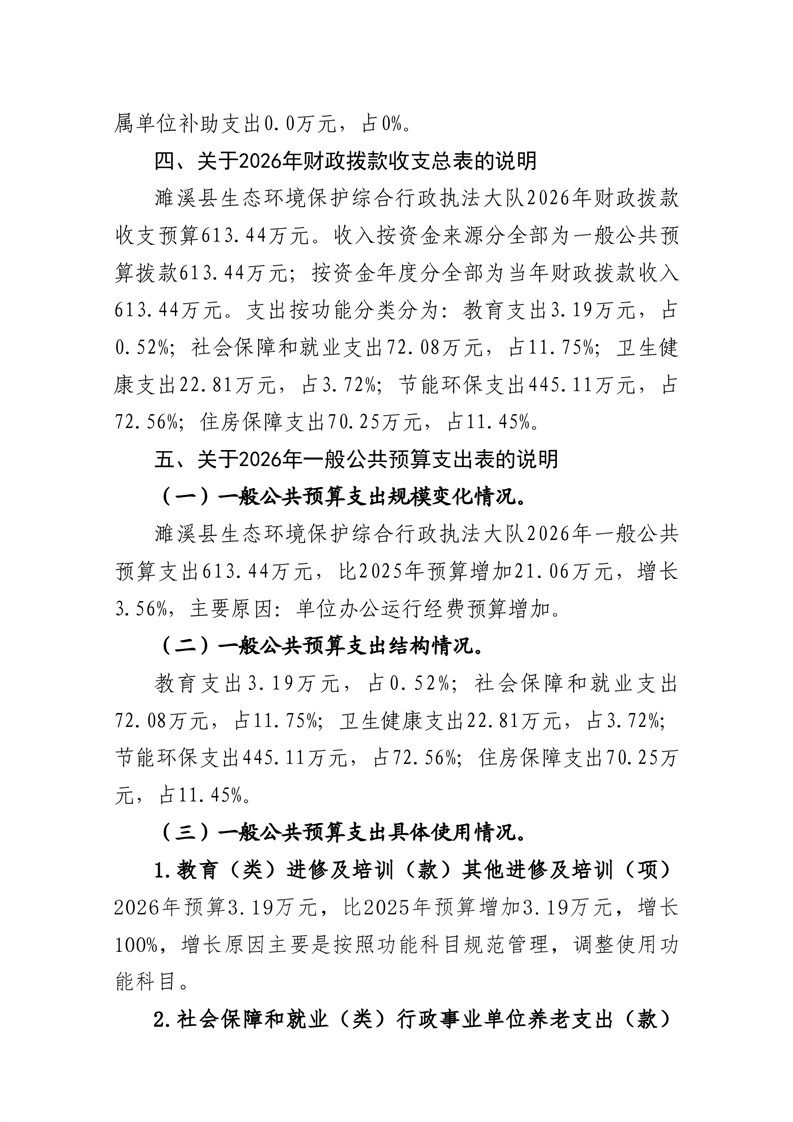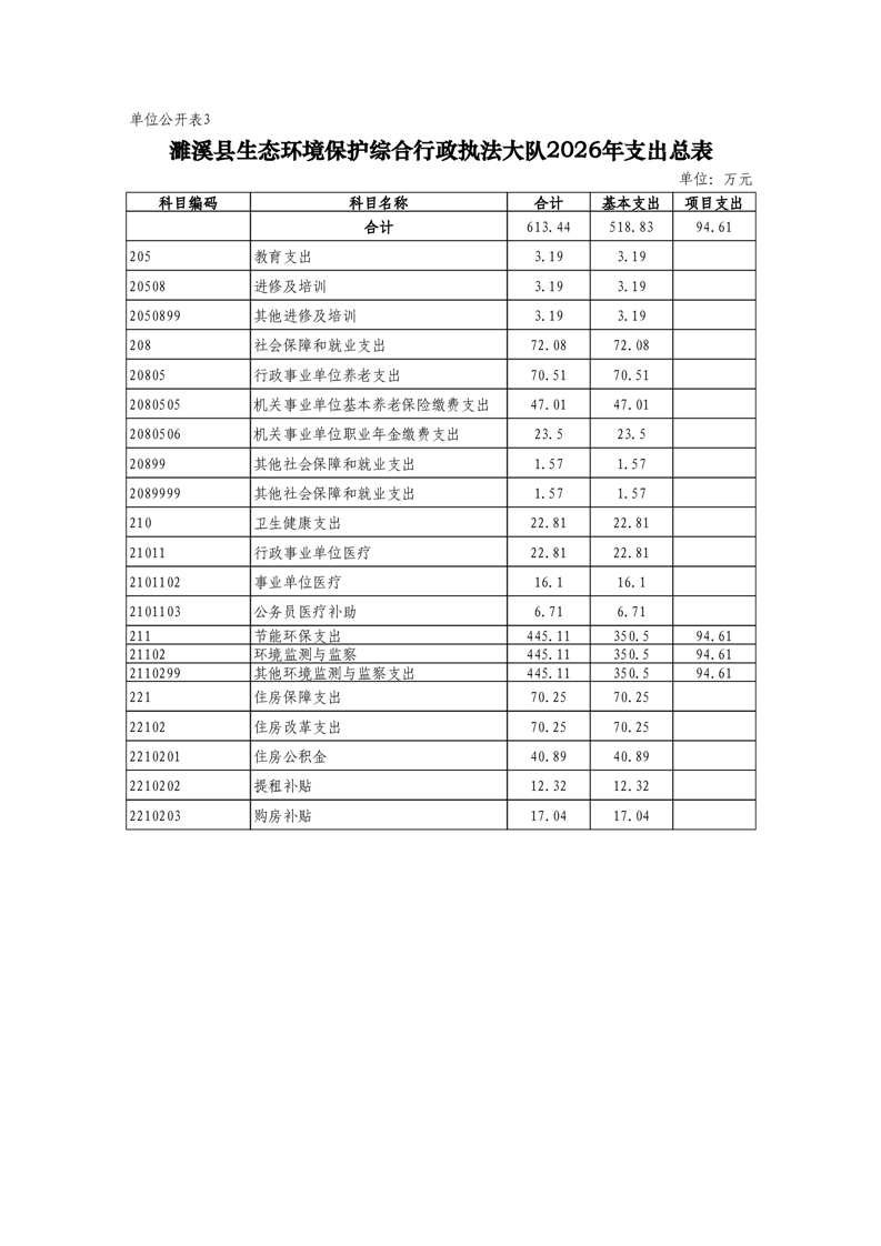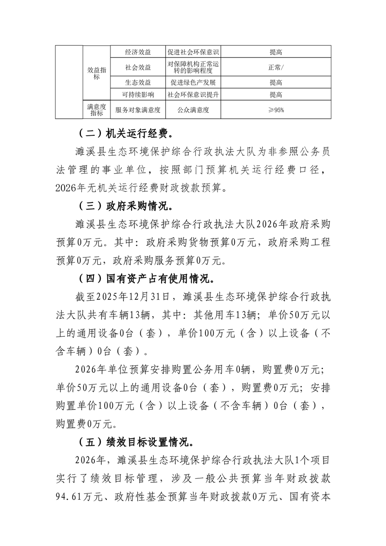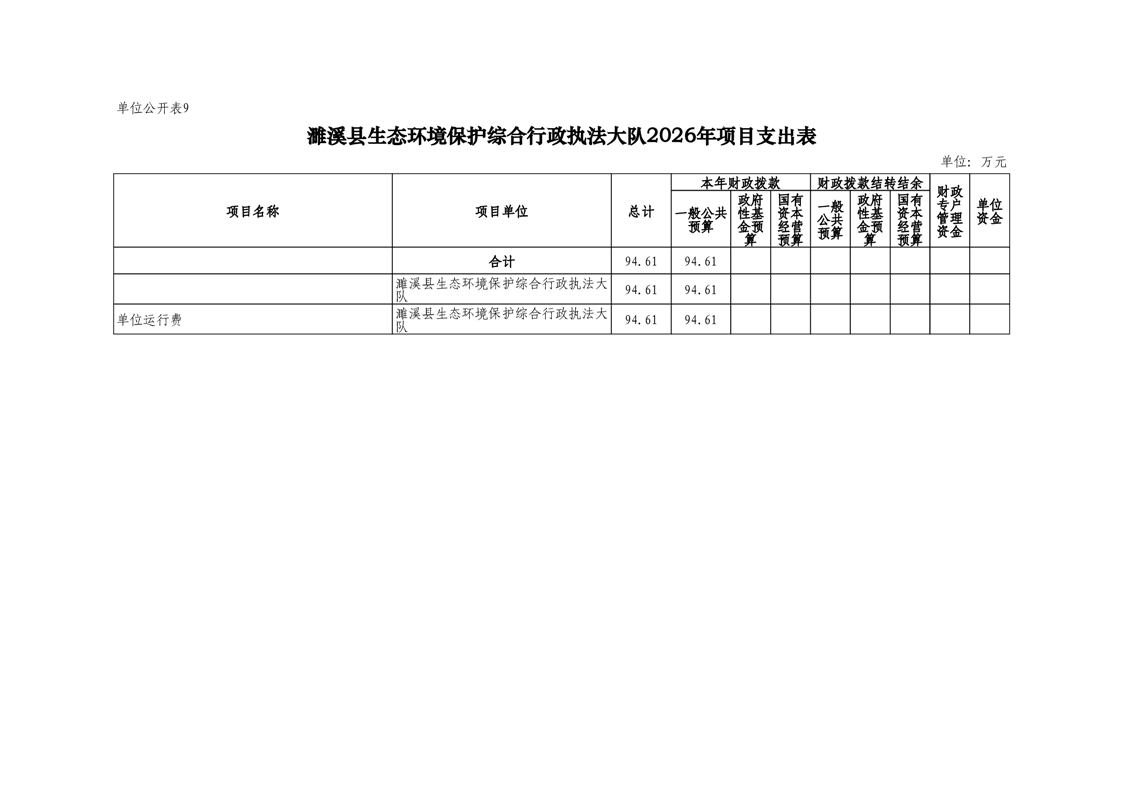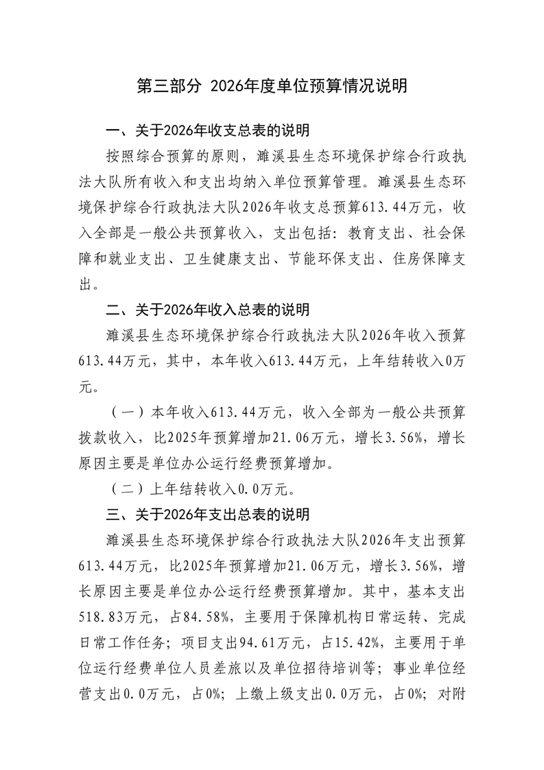 濉溪县生态环境保护综合行政执法大队2026年度单位预算公开