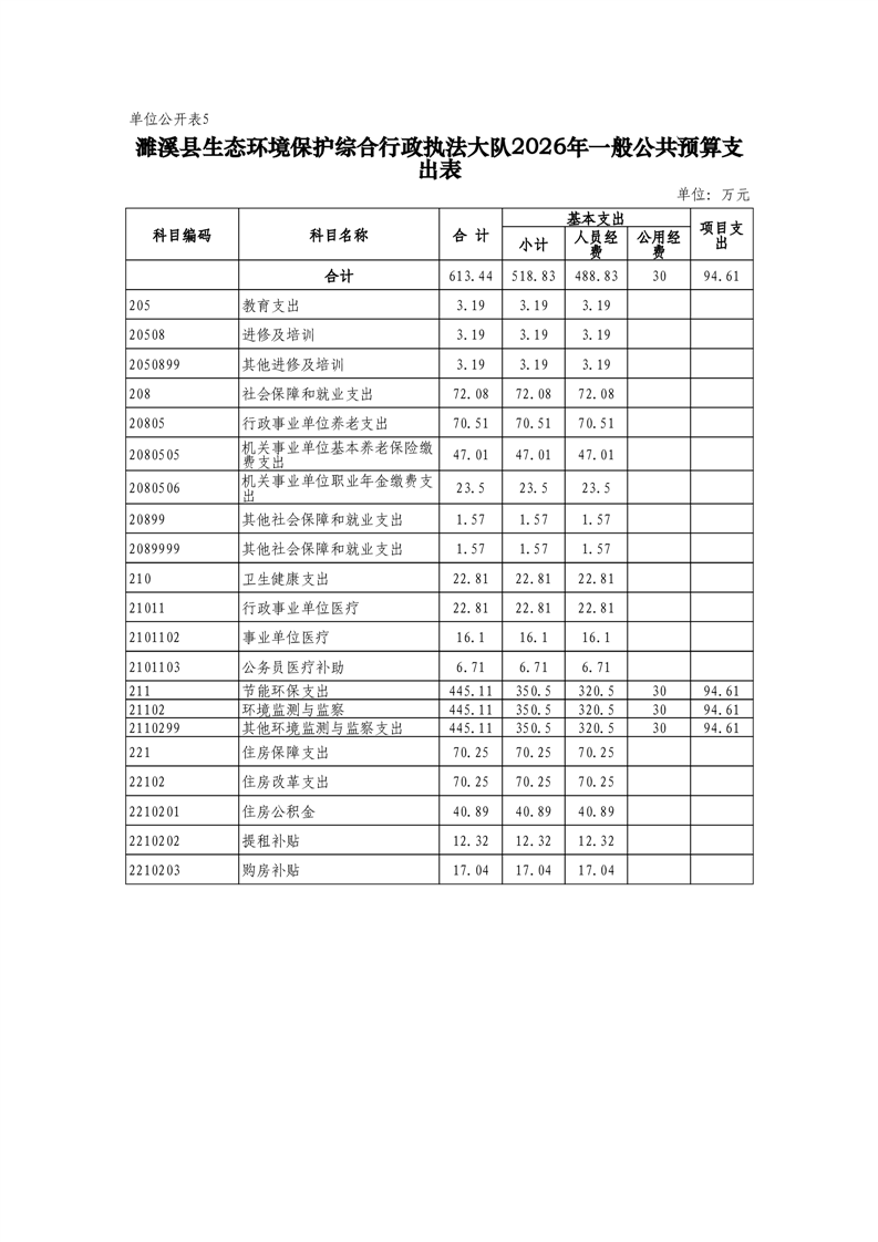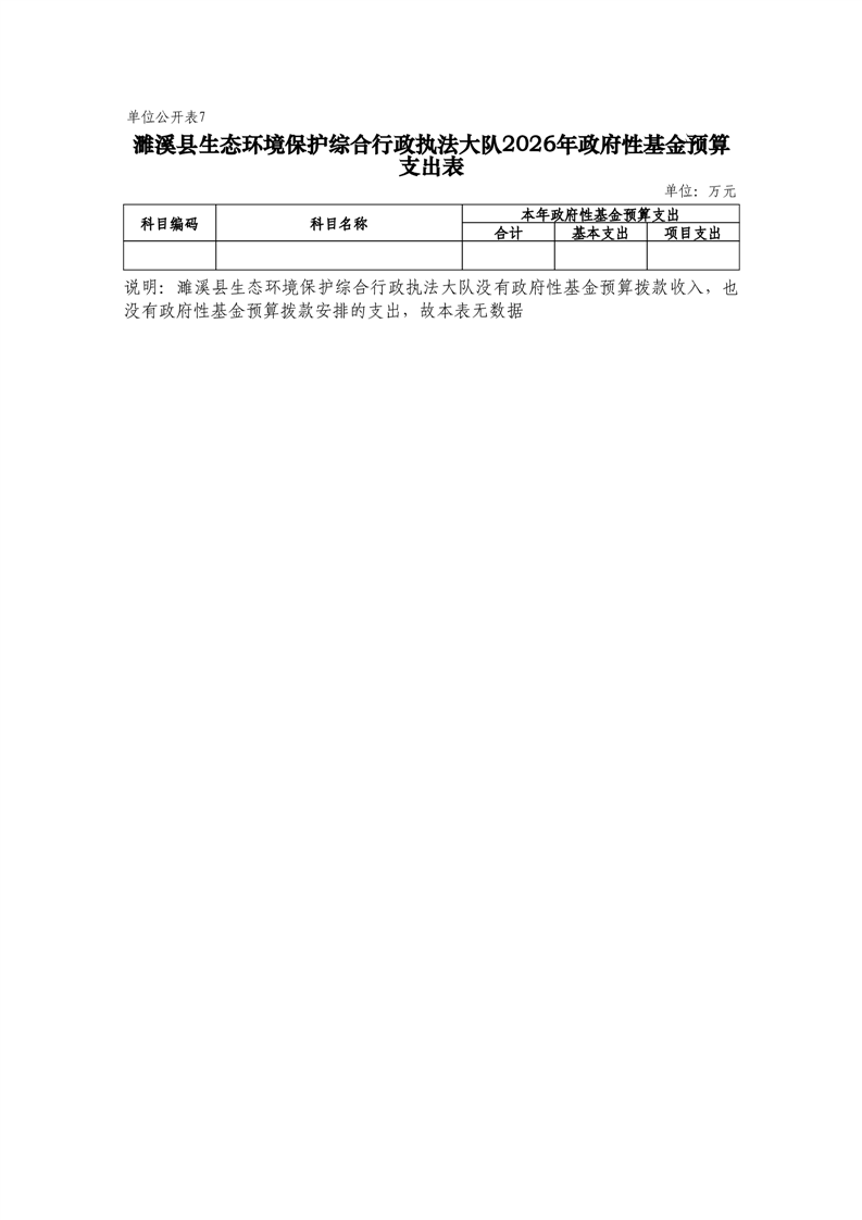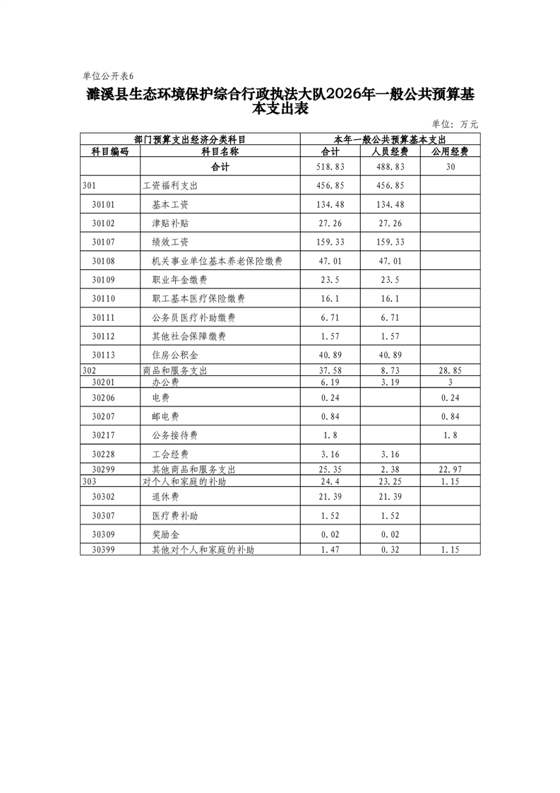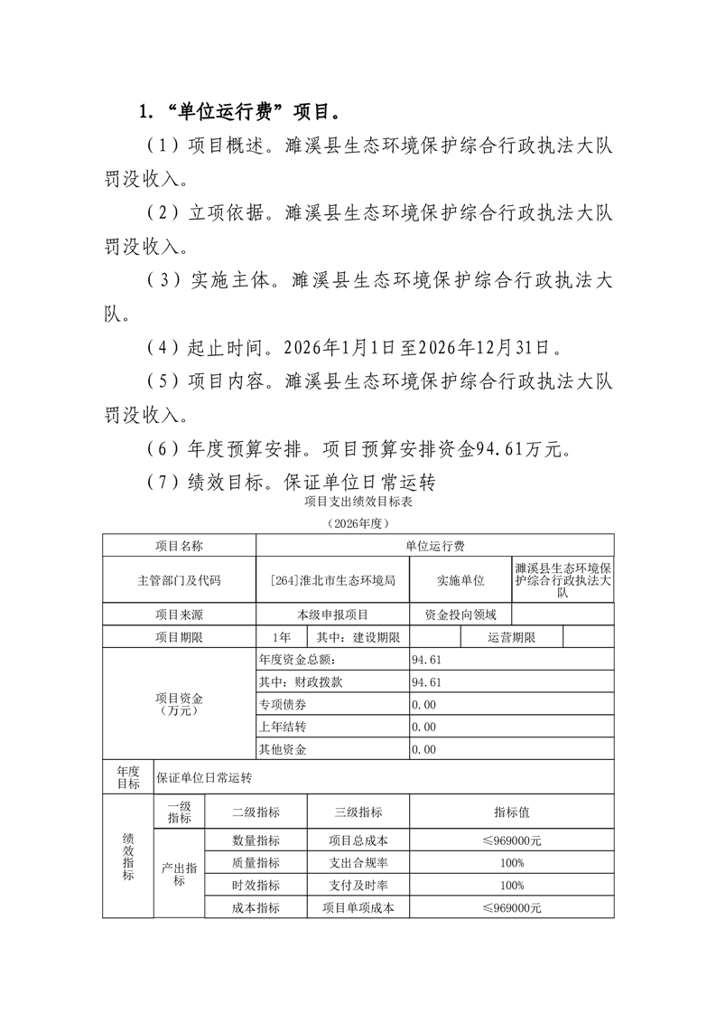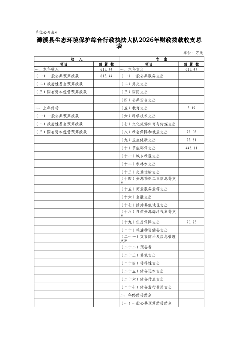 濉溪县生态环境保护综合行政执法大队2026年度单位预算公开
